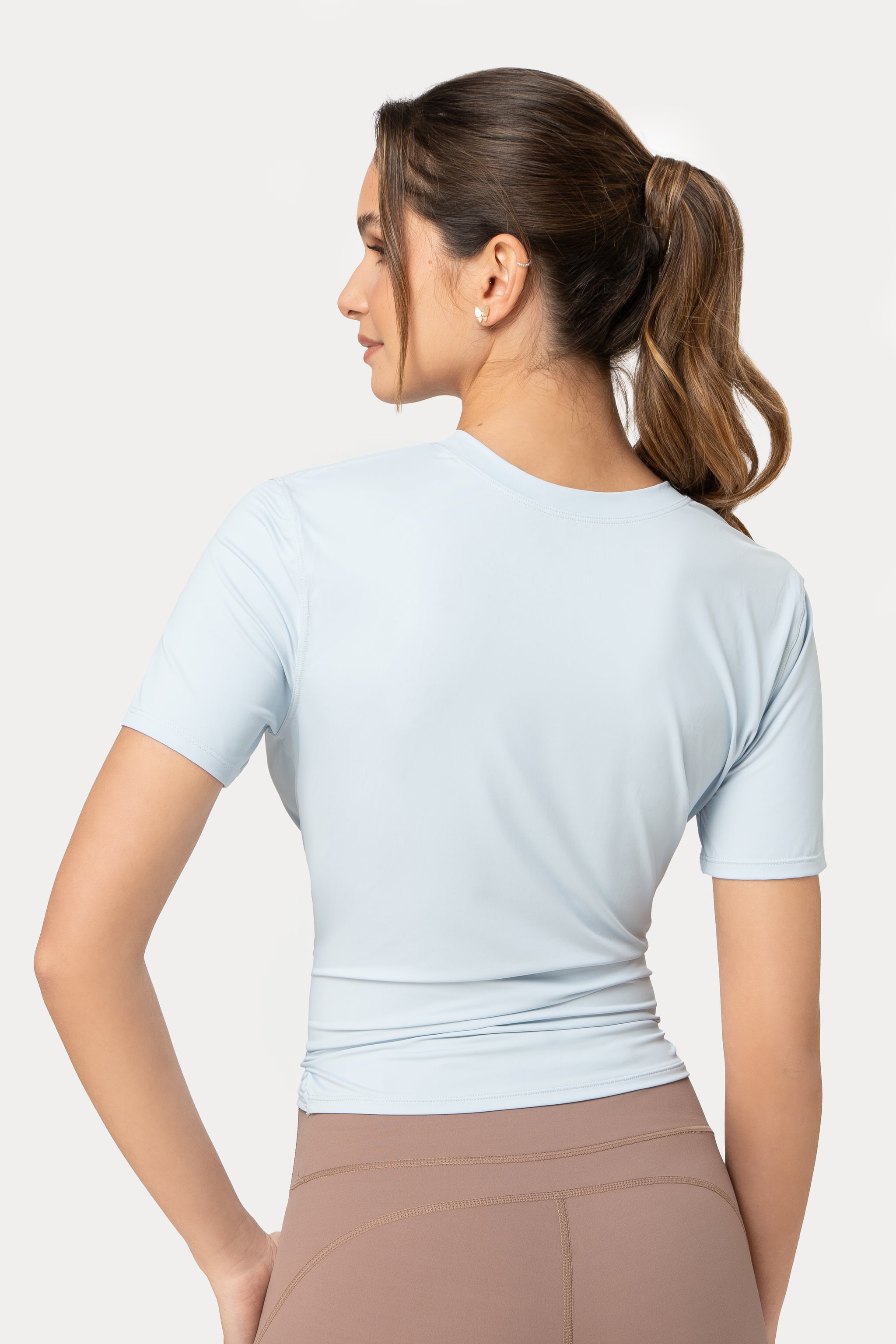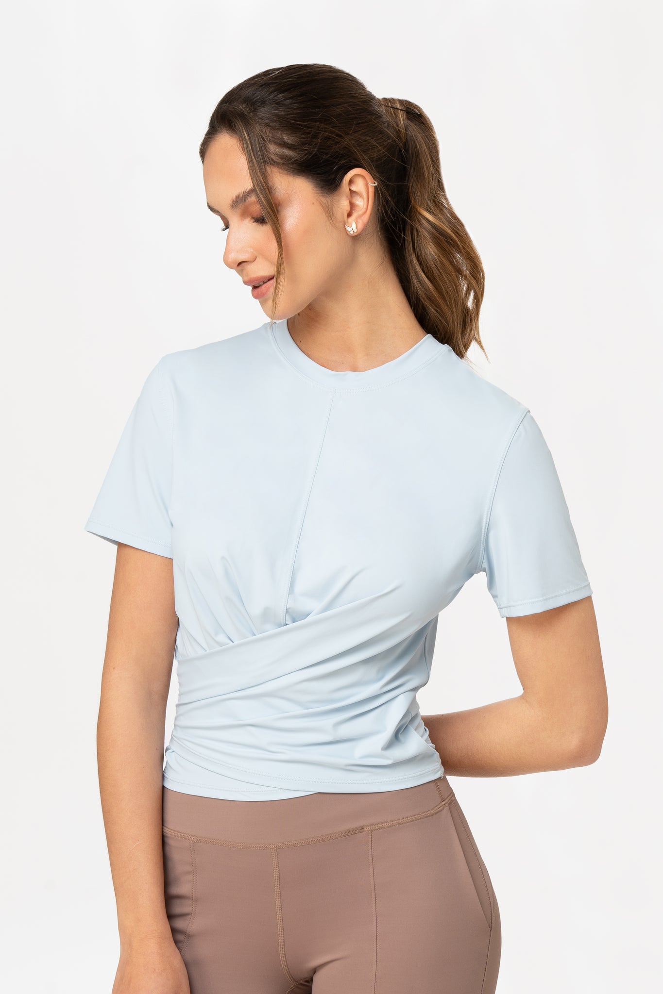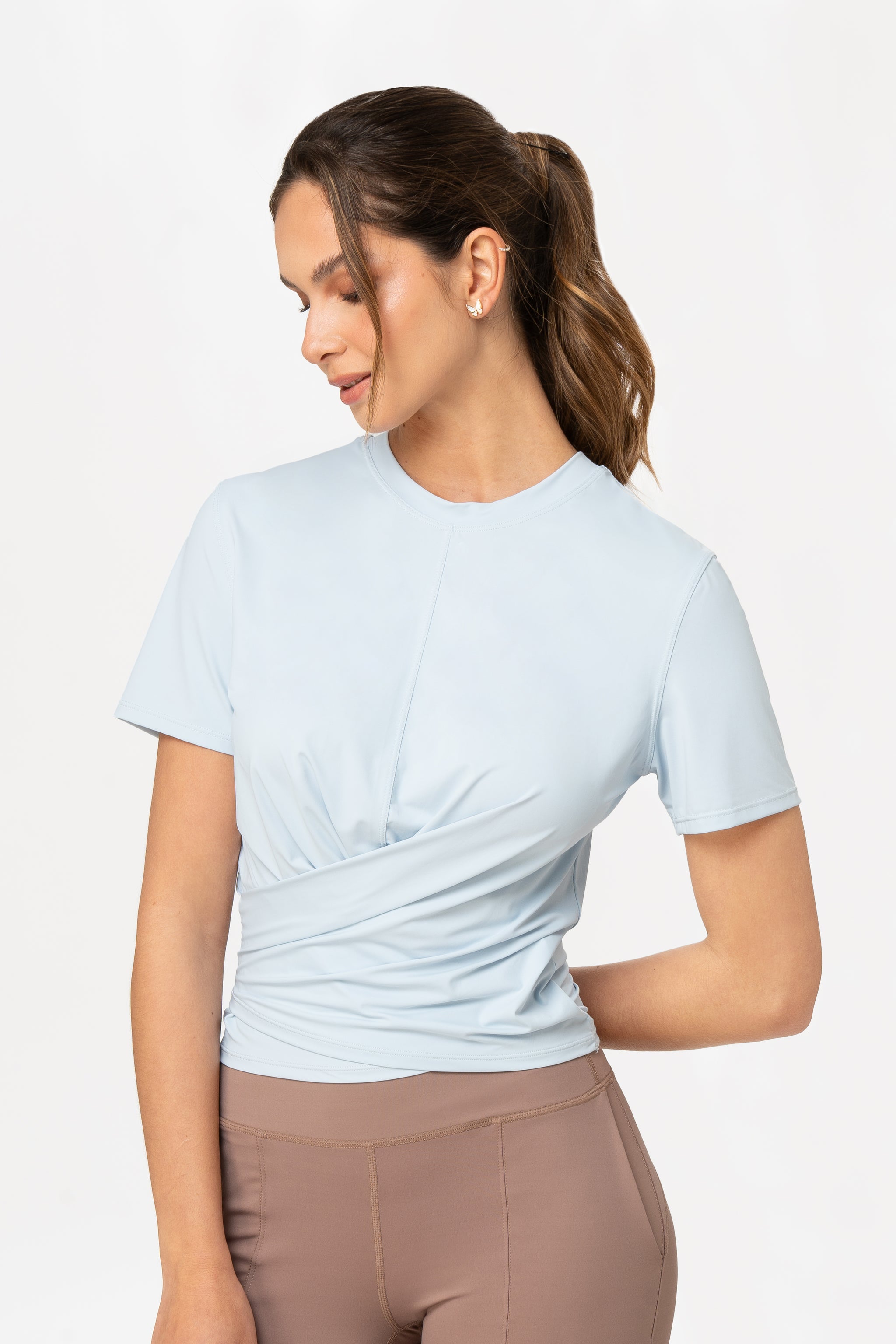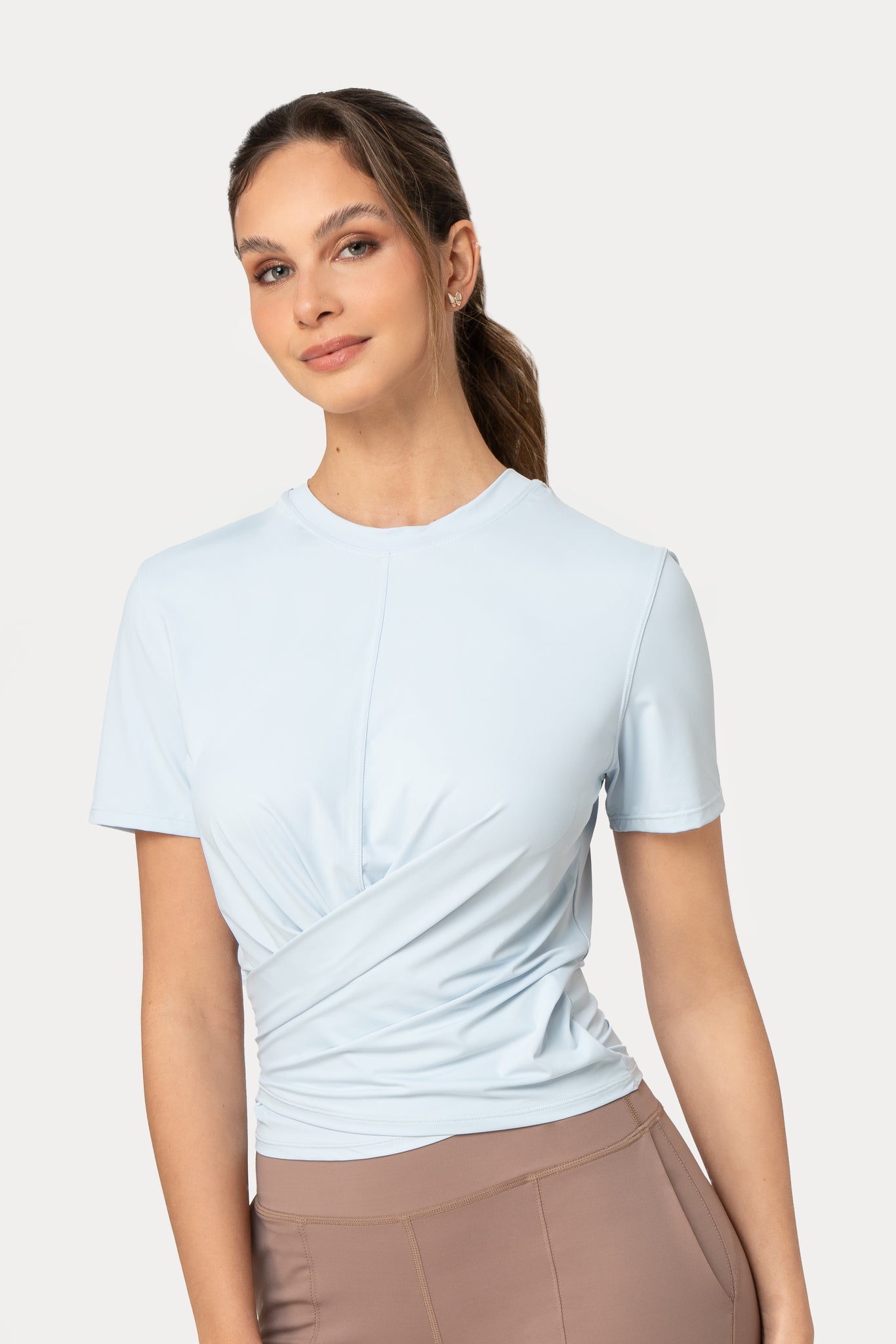 Su diseño cruzado en la parte delantera realza la silueta y define la cintura, mientras que el cuello redondo aporta un toque clásico y limpio. Ideal para entrenar o acompañarte en tus días más activos.