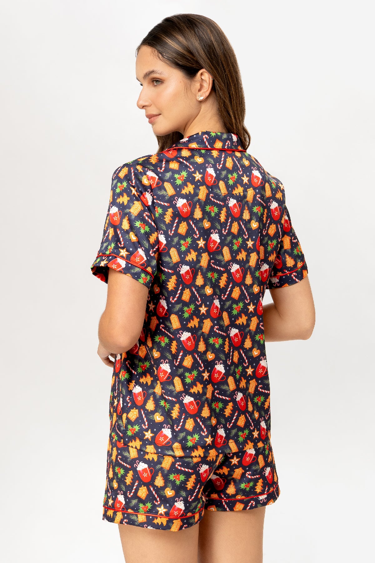 Su tela satinada ultra suave y su diseño clásico con botones y ribetes rojos hacen que cada noche se sienta especial 🎁